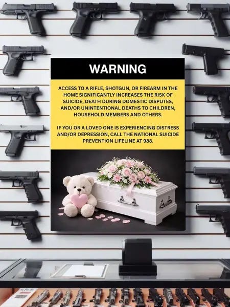 “… the legislation would require consumer warnings with striking images about the dangers of guns — similar to fliers that sound the alarm over smoking cigarettes in other nations.”