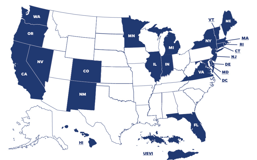 States that have enacted ERPO laws as of February 2026; via Johns Hopkins.