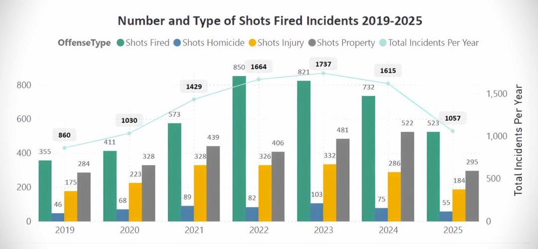 “Overall shots fired incidents and shooting victim numbers have steadily decreased over the past few years. The report states that 2025 marked the lowest number of shooting victims since pre pandemic years, and shots fired incidents approached pre pandemic levels.”