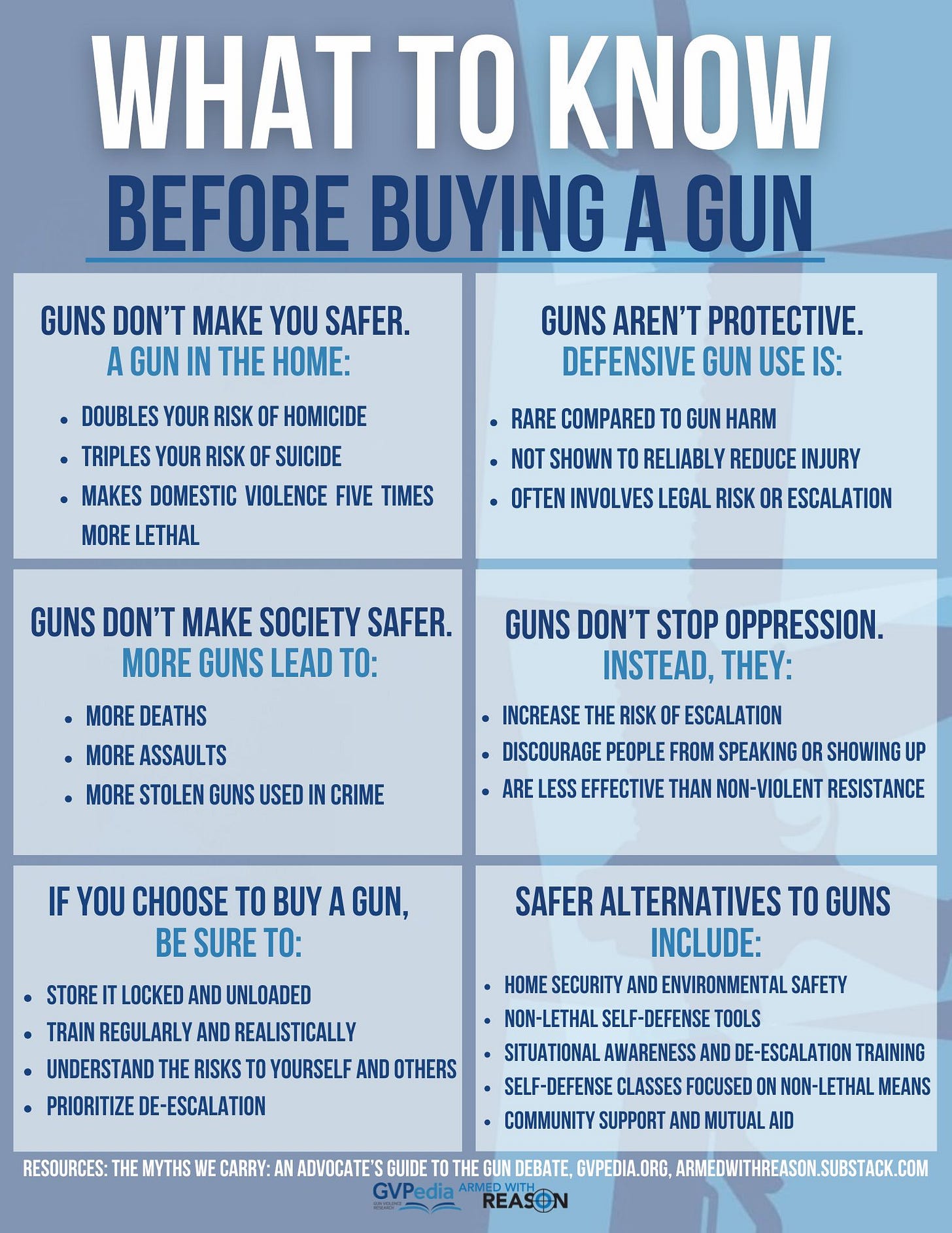 While those fears are completely understandable, we wanted to share this fact sheet that we’ve created to serve as an informational conversation starter to highlight the dangers of gun ownership and as a foundation for future inoculation against the myth that “guns make you safer.”